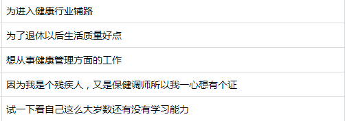 看了这么多,相信大家心里也有点底了,尤其是小盛做了一番调查,发现大家选择考健康管理师的理由,都很让人感慨……