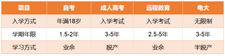 老师给大家科普一下学历提升方式,学历提升分三大类:统招(普通高考)、自考、继续教育(成考、电大和远程),其中最快的就是自考,只需要1.5年到2年时间。