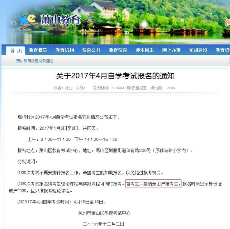 1、杭州萧山:在2017年4月等多个考期,都规定首考生只接纳本地户籍,需出示身份证或户口本,且只能报考理论课程。