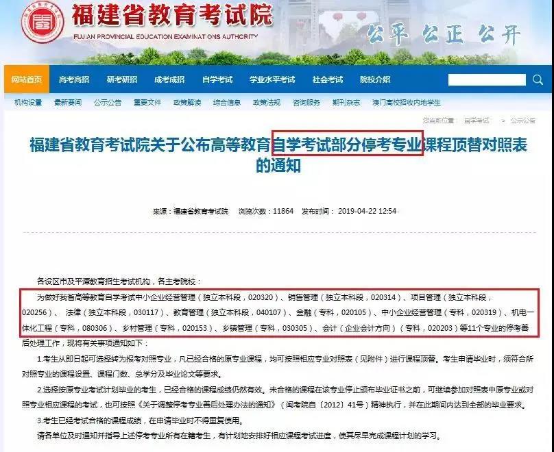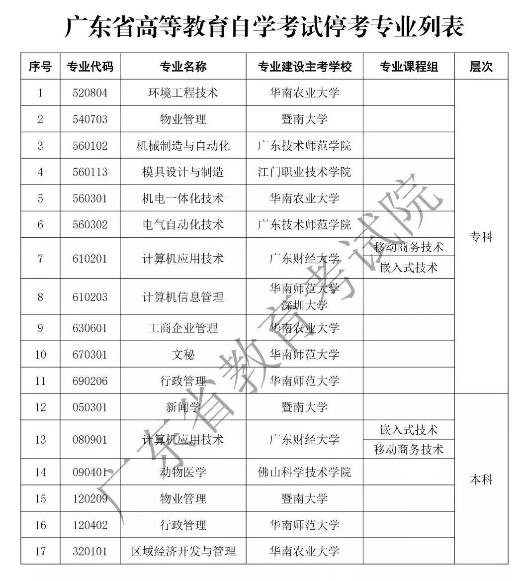宣布停考环境工程技术(专科)等17个专业,其中专科专业11个,本科专业6个